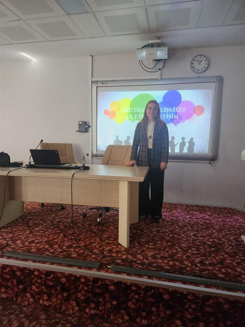 Üniversitemizde "İŞKUR Gençlik Programı" katılımcılarına yönelik Hizmet İçi Eğitimler kapsamında bölüm öğretim üyelerimizde Dr. Öğr. Üyesi Arzu Çalışkan Sarı 22.10.2025 tarihinde "Kişilerarası İlişkiler ve Etkili İletişim" başlıklı eğitimi vermiştir.