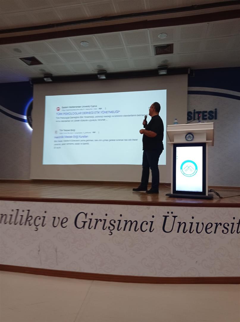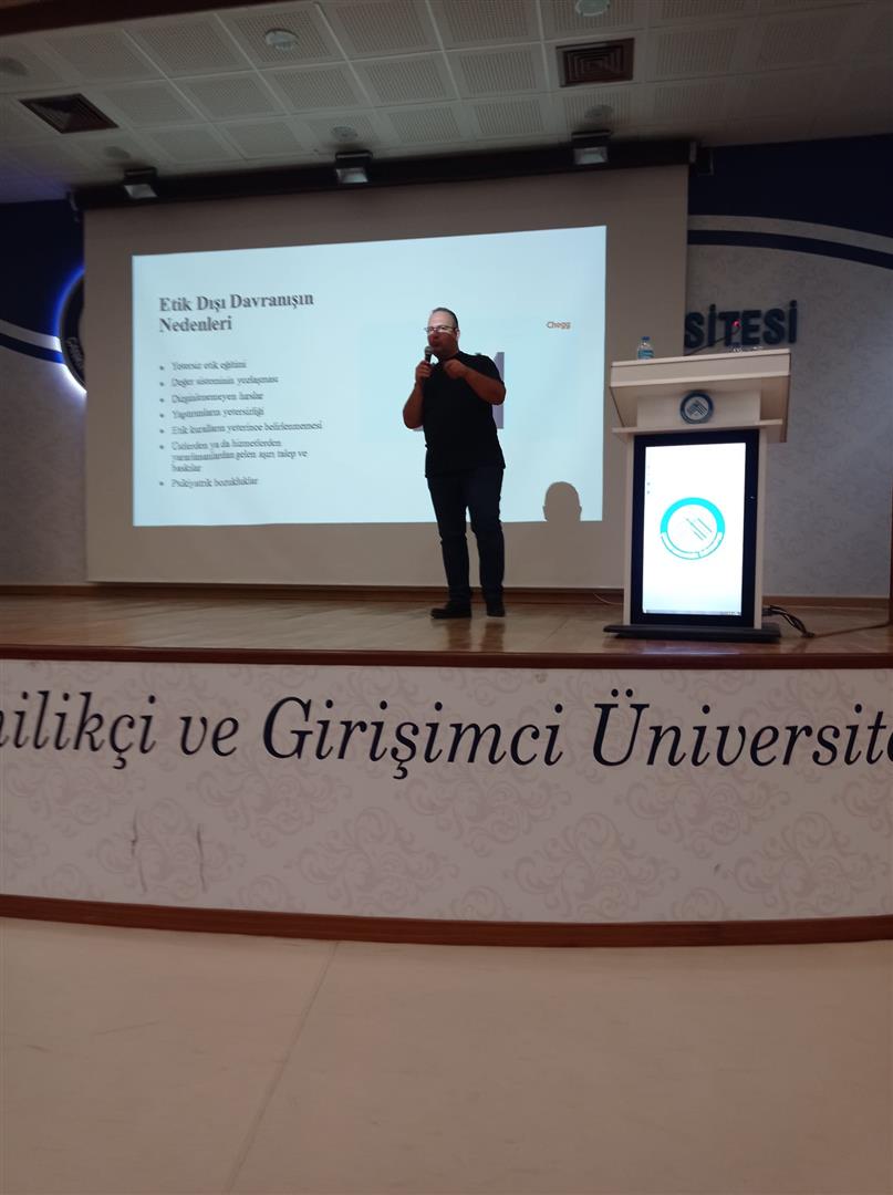 Bölümümüz Dr. Öğr. Üyesi Temel Kalafat 17.09.2025 tarihinde üniversitemiz akademik ve idari personeline "İnsan İlişkilerinde ve Kamuda Mesleki Etik ve Etik Duyarlılığının Kazandırılması" isimli eğitim verilmiştir.