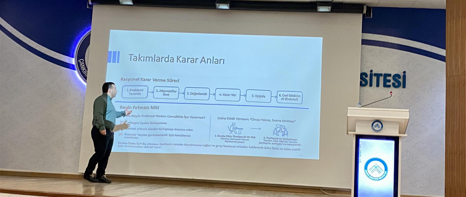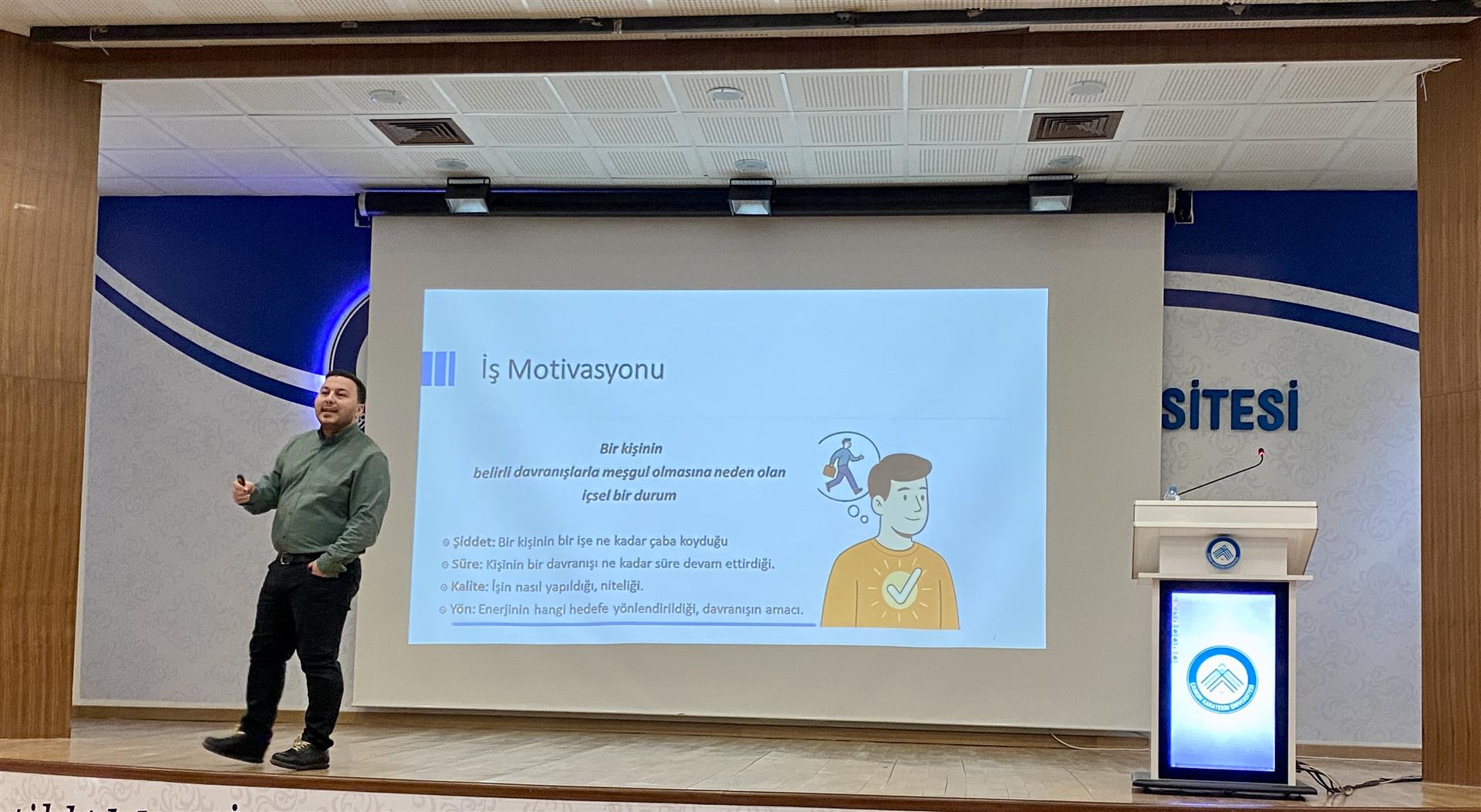 Bölümümüz öğretim elemanlarından Dr. Ferhat Ayyıldız, 2025 Yılı Hizmet İçi Eğitim Planı kapsamında 24.12.2025 tarihinde Üniversitemizde görev yapmakta olan personele yönelik "Motive Bireyler ve Etkili Takımlar" isimli eğitimi gerçekleştirmiştir.